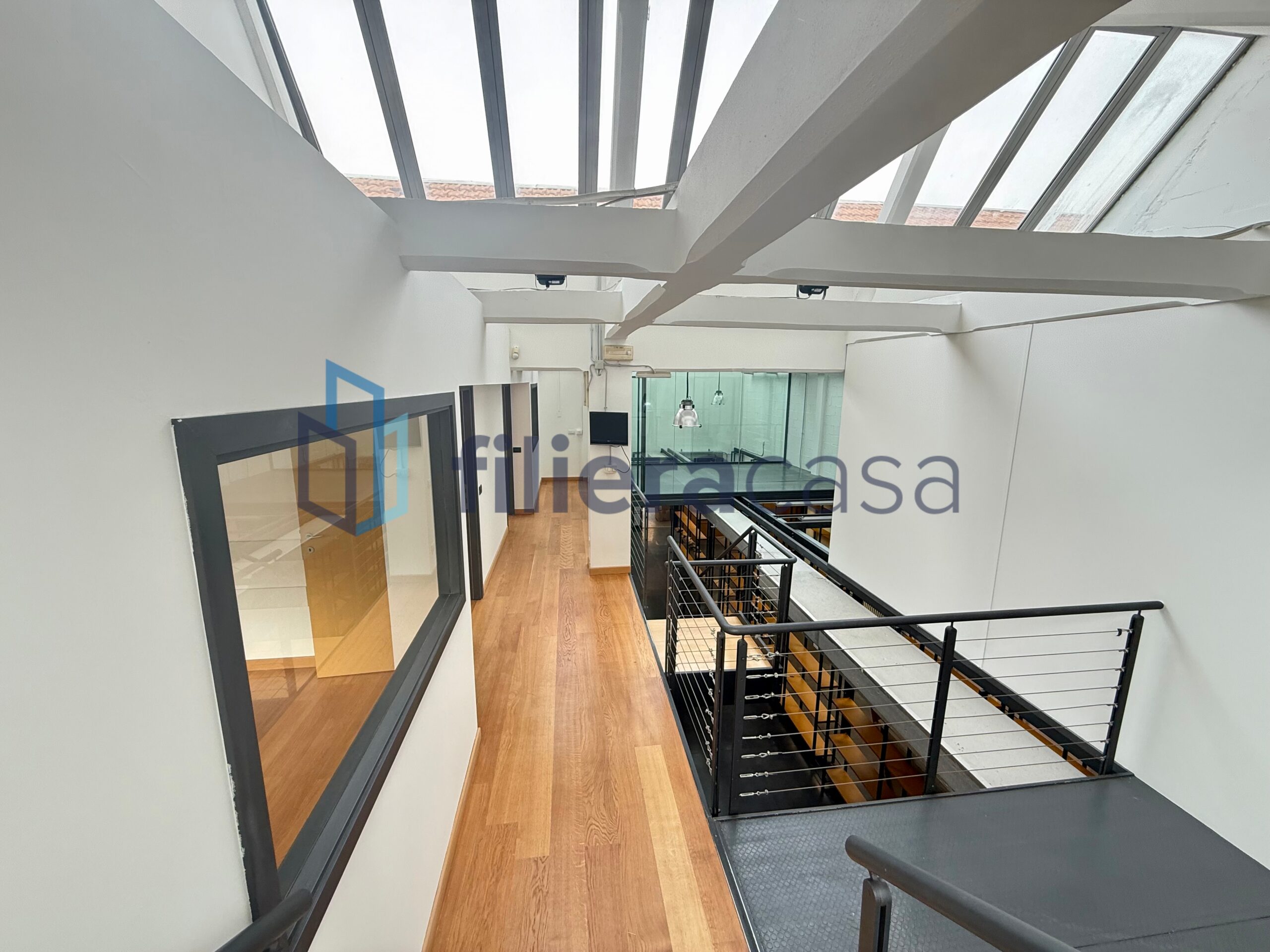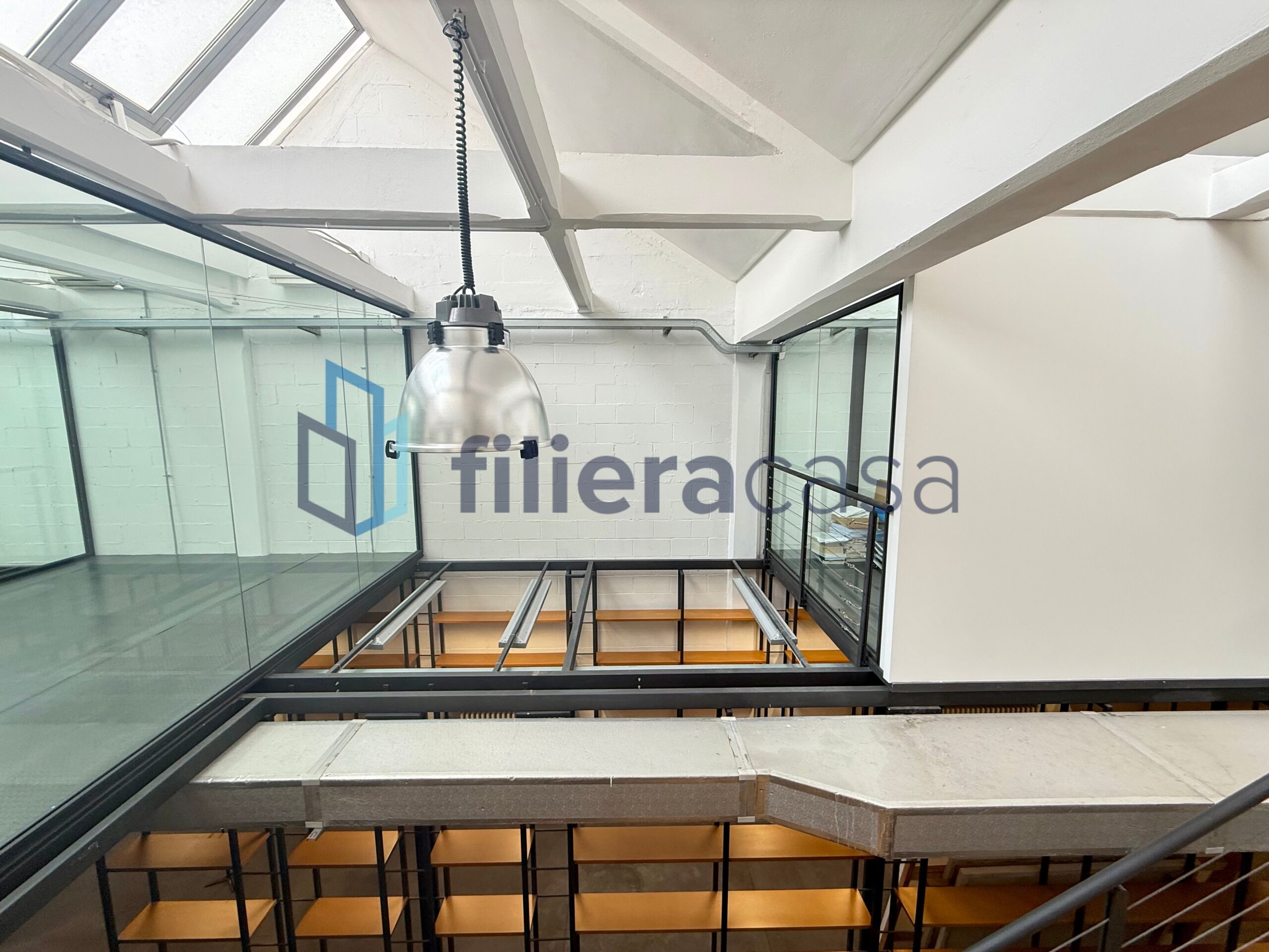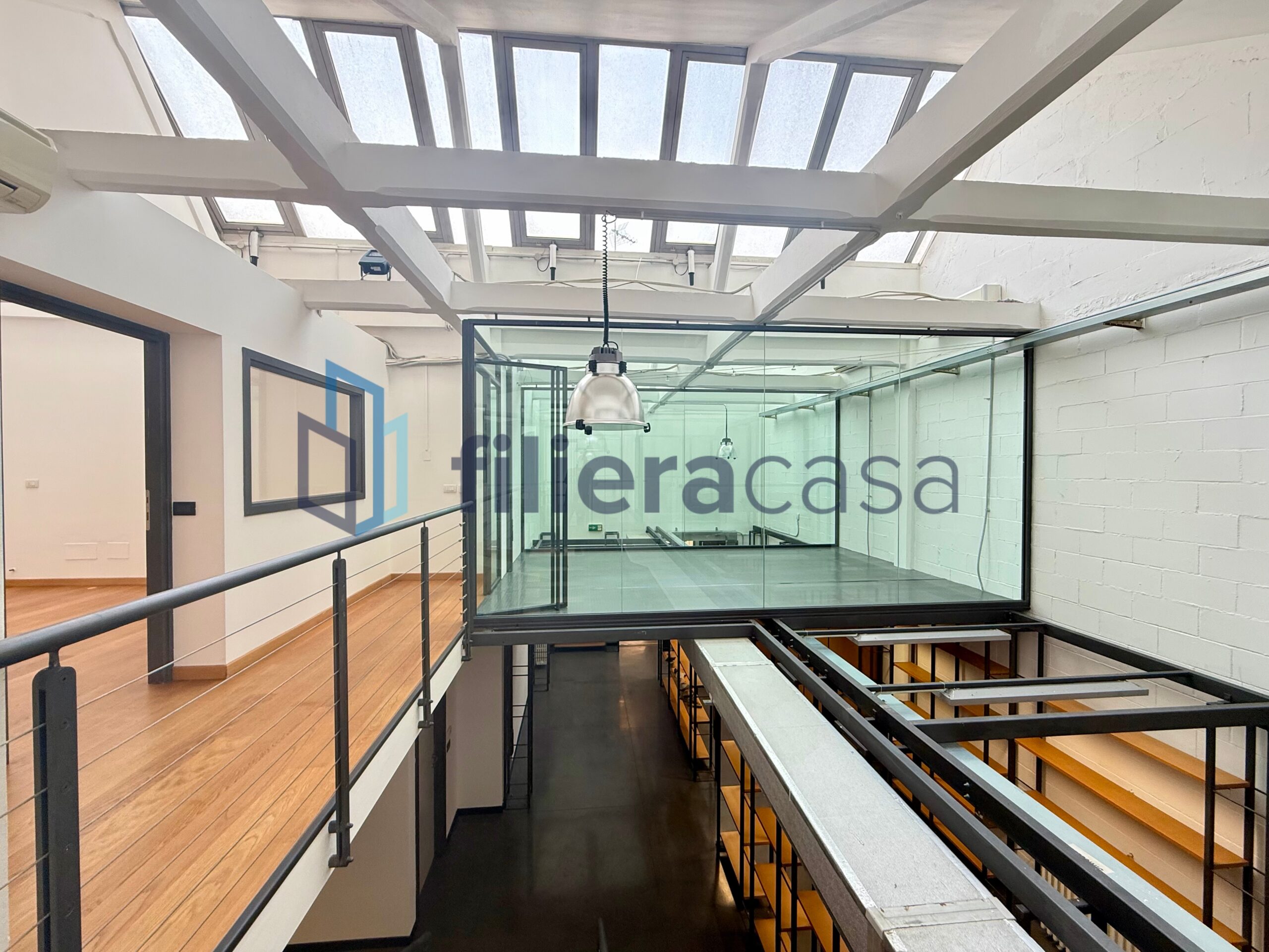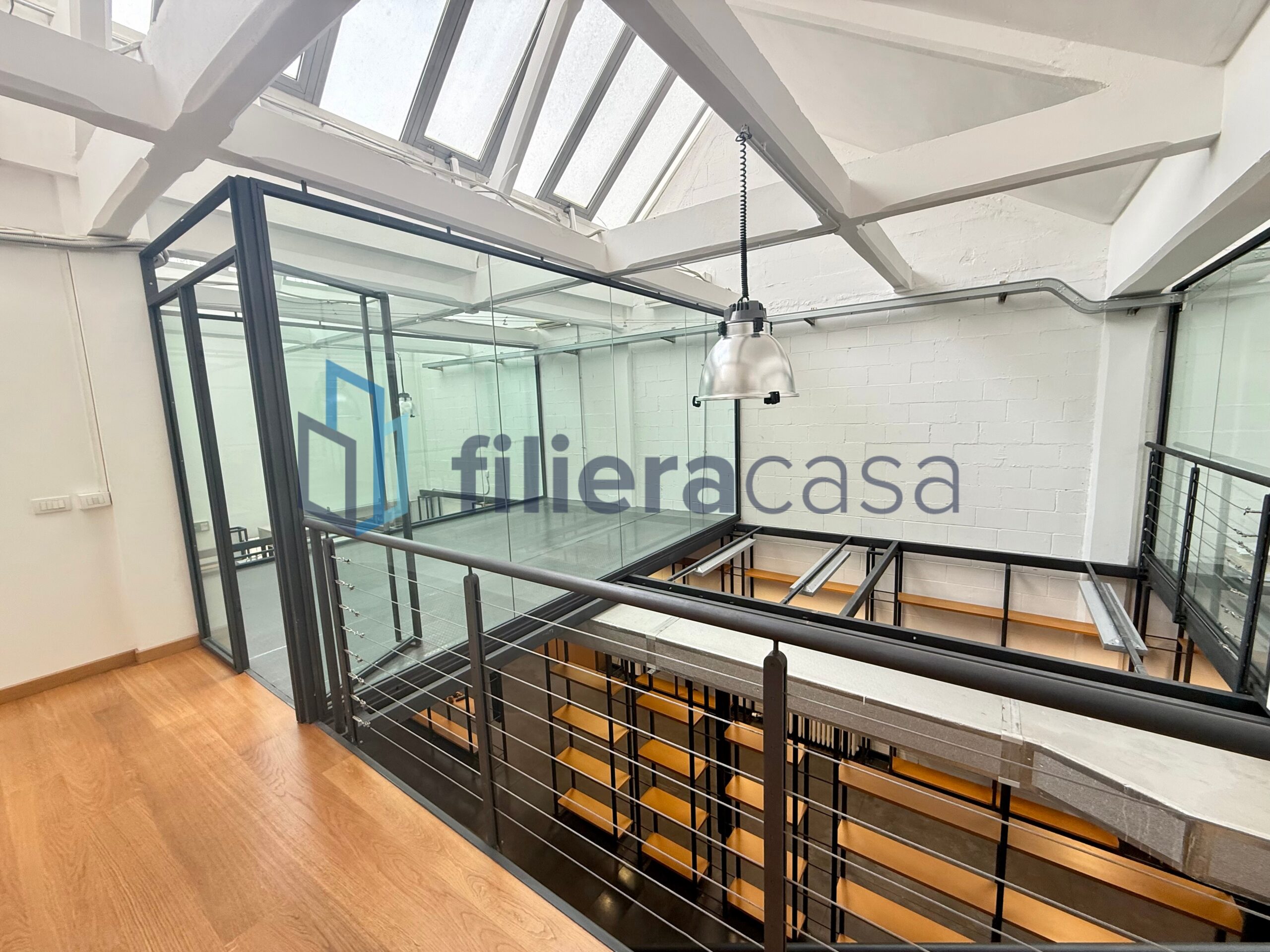 L’immobile si sviluppa su due livelli ed è caratterizzato da grandi volumi interni con altezza soffitti di circa 7,40 metri e da una straordinaria luminosità grazie alla presenza del tipico tetto industriale con lucernari a shed, progettato per diffondere la luce naturale negli ambienti di lavoro.